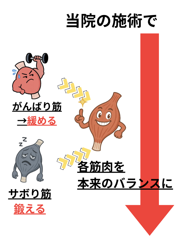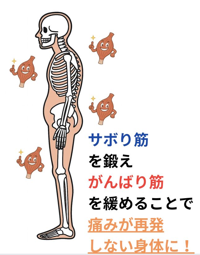 そうすることで、サボり筋とがんばり筋のバランスが整い、再発しない身体へ。